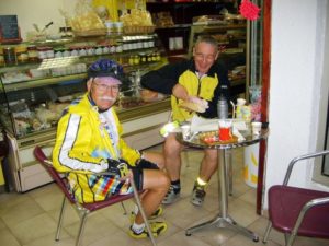 À Grasse, nous rattrapons le breton solitaire Michel Le Crom . Nous échangeons quelques mots et déjà, il repart car le délai fatidique s’achève pour lui une heure et demie avant le nôtre.