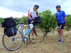 Après avoir escaladé puis dévalé Fanjeaux, notre parcours croise, à Prouille-Monastère, la route de notre première diagonale Brest / Perpignan. J’ai une pensée pour Christian qui nous a initiés et communiqué sa passion pour ce genre de périple.